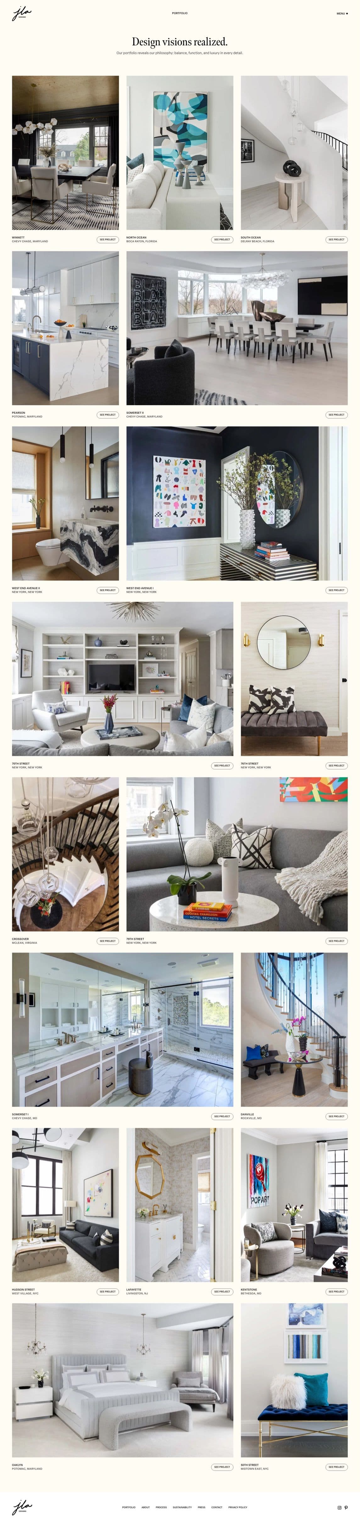 The portfolio is the heart of the website and showcases JLA Designs’ exceptional work in a way that inspires potential clients. The grid layout is clean, polished, and thoughtfully arranged—like a well-designed room. Each project is presented with a striking image and a seamless link to explore the full details. This section offers a glimpse into their stunning interiors, allowing their work to speak for itself with clarity and style.